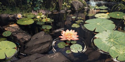 (masterpiece:1.2), best quality,fantasy,scenery, from above, water, no humans, flower, lily pad, outdoors, rock, food <lora:UE_20230717224732-000003:0.6>