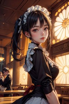 interior architecture, cinematic lighting, motion blur, film grain, bokeh, 4K,sad, short twintails, maid headdress, interior architecture, cinematic lighting, motion blur, film grain, bokeh, 4K