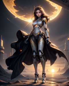 ((best quality)), ((masterpiece:1.4)), (extremely detailed), (8k, high quality, cinematic, hyperrealistic, illustration, absurdres, octane render, fantastic realism, vibrant color, high detail, rich textures, accurate anatomy, perfect hands, perfect feet, complete fingers, natural form, proper number of limbs, symmetrical, flawless, high-resolution, depth-filled, polished, consistent style, innovative design, perfect proportions, properly aligned features, precise, harmonious colors, soft lighting, creative, fluid movement, intricately detailed, dynamic perspective, balanced composition, 3-dimensional, natural posing, high contrast), ((((Full-body, imagine the droid at about 12 feet tall in a futuristic warzone, hyper-detailed portrayal of a Mech. Its formidable, bipedal silhouette shimmering in the harsh, unyielding solar glare, its carapace glowing with the hot radiance of sun-forged steel. Bundles of its solar-flare orange cabling, braided with crackling power conduits sculpted from solar crystals, wind down its heavily armored form, casting stark shadows in the daylight. Its ocular sensors, like dual solar lenses, mirror the relentless heat of the solar seas with their blazing, constant stare. Cloaked in dense, sunspot-black armor plates, carved with heliographic patterns and traced with golden circuits, it raises an elaborate solar disk shield, its surface rippling with a magnetic energy field, readying a formidable, sun-blocking defensive stance. Massive, sun-ray etched mech paws stamp heavily into the sun-scorched battleground. It stands on the edge of a solar flare, dominating a vast heliospheric battlefield, the blazing light of a million suns reflecting off its armor, casting a threatening aura in hues of gold and obsidian)))), (cinematic lighting, rim light, key light, fill light, backlight, ambient light, hair light, accent light, three-point lighting, volumetric light), (zoom out:1.3, depth of field, f/4 aperture, wide-angle lens, HDR, golden ratio, leading lines, framing, prime lens, color grading), mecha, scifi, armor, niji, (3d model, robotic soldier, brutal armor, heavy metal design, closed helmet), (subdivision, cyber muscle, angular design, mechanical, carbon-fiber, high-tech, pistons, robotic frame, metal joints, rubber cables), (scifi, hard surface, armor, metal bolts, robotic, industrial, structures, sub-d), (bloom, rim lighting, studio lighting, soft lighting, low key),