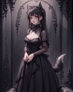 Masterpiece, utra detail, fine detail, tail, gothic background, 8k,magichands, loona, hellhound, loonashorts, loonacroptop, goth girl, goth makeup, ballgown, wearing a ballgown, gothic makeup, goth girl, furry, gothic dress
