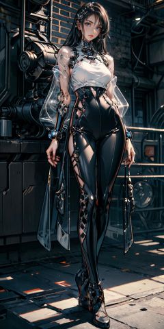 masterpiece,best quality,Ultra-high resolution,Realistic,sense of reality,The ultimate detail,8K wallpaper,Professional lighting,The perfect hand,Realistic hands,1girl,solo,standing,full body,(long black hair:1.1),jixieji,Wearing a mecha,mechanical joint,dynamic posture,Universe,Earth,machinery,Heela collections,Mecha girl sexaroid,Chain link fence,Real