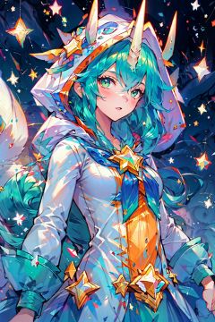 (best quality,masterpiece:1.1,ultra detailed,extremely detailed CG unity 8k wallpaper,masterpiece,RAW photo),(realistic,photo-realistic:1.1,1girl,solo),((perfect female body,narrow waist)),1girl, solo, single horns, ((single horn)), long hair, green eyes, star guardian (league of legends), animal ears,(green hair), long sleeves, gradient background, bangs, looking at viewer, shoes, hood, alternate costume, puffy sleeves, alternate hair color, star (symbol),upper body, real photo,nijistyle, , , <lora:EMS-11050-EMS:1>, <lora:EMS-1571-EMS:0.4>, <lora:EMS-3106-EMS:0.8>