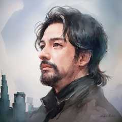 RAW photo, a close up portrait photo of brutal 45 y.o man in wastelander clothes, long haircut, pale skin, slim body, background is city ruins, (high detailed skin:1.2), 8k uhd, dslr, soft lighting, high quality, film grain, Fujifilm XT3