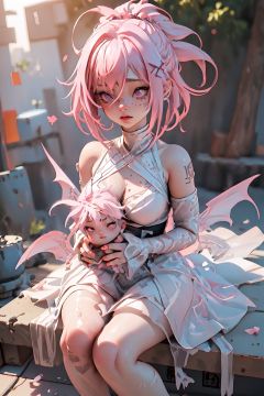 a girl with pink spiky hair, | depth of field, bokeh, | smooth detailed shadows, hyperealistic shadows, (saturated colors:1.2) | (game cg, unreal engine, pixar style), (3d model), style of Dustin Nguyen,shkaristyle