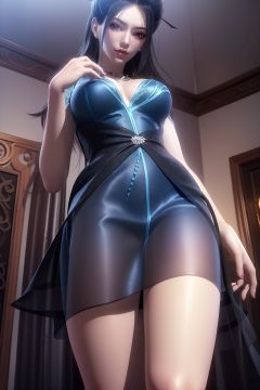 masterpiece, (best quality), official art, extremely detailed cg 8k wallpaper, (extremely delicate and beautiful), solo, realistic, photo_\(medium\), from below, , hiqcgbody, <lora:hiqcg_body_epoch:0.3:NF>, 1girl,cowboy shot, look at the viewer, blue dress, solo, tattoo, hair stick, <lora:lingji_v2-12:0.7>, bare thighs,