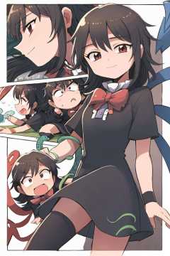 masterpiece, best quality, <lora:NueHoujyuu:1>,houjuu nue, black hair,short hair,red eyes,red bow,short sleeves,wristband,snake,,black dress,black thighhighs,asymmetrical wings,smile <lora:style05:1>,(chibi:1.2),white background, comic,multiple girls, multiple views, border, koma