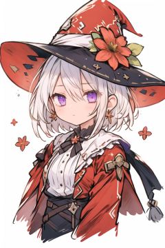 quality_best,style_onineko,(Distinct pupils)(Clear eyes),wizard hat,1girl,solo,c,earrings,looking at viewer,flower,short hair,bangs,closed mouth,simple background,black headwear,white background,red flower,upper body,white hair,hair intakes,frills,purple eyes,hair ornament,expressionless,hat flower,eyelashes,best quality,<lyco:[LoHa]style_onineko_v2:0.6>,<lora:bdsqlsz:0.6>,