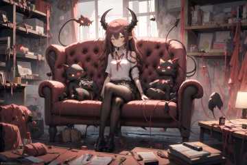 masterpiece, best quality,1girl, demon girl, hell, (red theme:1),collared shirt, desk, sitting, office<lora:GPTS6 Hella-sthetic_424353:1> <lora:S12 v4.2 NAI_208163:1>