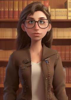 an italian nerdy geeky girl looking away from camera, wearing squared eyeglasses, scruffy curly untidy brown hair, a long scarf, oversized jacket, inside a library, bookshelves on the background, natural light, sweet, shy, serious