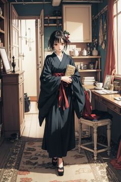 ,(((masterpiece,best quality))),((good structure,Good composition,good atomy)), ((clear, original,beautiful)),1girl,girl,japanese clothes,indoors,