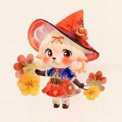 masterpiece, best quality,  <lora:klee-2-000010:1.2>,furry, chibi, <lora:0622_watercolor_loha_da16_dim64-000010:0.6>,witch hat, red hair bow,vision \(genshin impact\), sidelocks,belt, red theme, watercolor, <lora:boldline:-2> , <lora:aca:1>