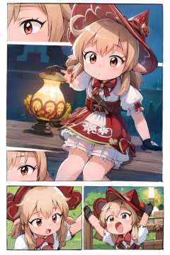 masterpiece, best quality, <lora:klee-ex:1>,  <lora:style05:1>,klee-ex,simple background, (chibi:1.2),multiple girls, multiple views, comic,koma,border,