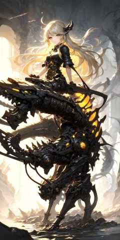 masterpiece, best quality, 1girl, gpts style, (nature:1.25), (mechanical:1.25), grey eyes, yellow hair, full body <lora:GPTS 18 Dynorm_6400:1>