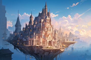 sky city,building floating on air, giant tree  , (((masterpiece,best quality))),((good structure,Good composition,good atomy)), ((clear, original,beautiful)),see color