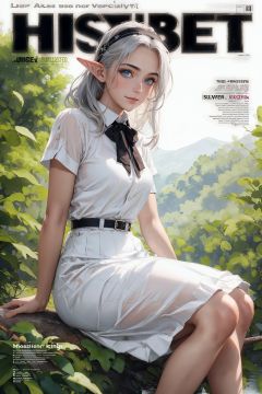 bow tie hair band, white transparent long skirt, noble, mysterious,
