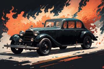 masterpiece, best quality, retro car, powerful, fire, splash art, (black background:1.4), lineart, sketch