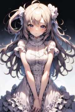 masterpiece, best quality, 1girl, frilled dress, (white background, simple background:1.3)