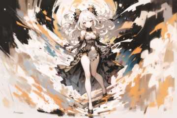 masterpiece, best quality, 1girl, full body, (gracious:1.1), (sketchy, jaggy lines:1), white hair, brown eyes
