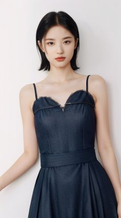 ((Dior black silk maxi dress with pleats)),((Jean Paul Gaultier)),angled bob hair,(((cowboy shot))), 1girl, 3d, masterpiece, best quality, ultra highres, sharp focus, professional, delicate, finely detailed, detailed skin, professional lighting, mature, idol, confident pose,makeup,style of alessandro michele,looking at viewer, ((simple background)), ((light camel background:1.1)), <lora:fugu:0.2>,<lora:MonkRen Lighting:0.75>  <lora:jjy:0.5>