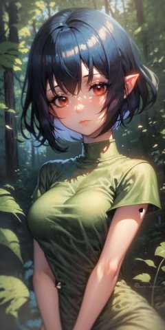 masterpiece, best quality, 1girl, oil impasto, blue hair, red eyes, shirt, forest <lora:Oil Impasto t2_45910:1>