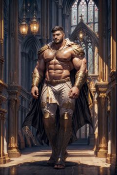 Best quality, masterpiece, ultra high res, detailed background, game_cg,muscular male, mature male, bara stocky, thick arms, thick thigh,(bara:1.1), 35 years old,(very short black hair:1.1),from above,full body, (full shot:1.0), wide shot,hairy,male focus,mature,,male only,bushy bread,nice hands, perfect hands,nice feet,perfect feet,(masterpiece,best quality:1.3),beautiful detailed glow,best illuminate,(((best quality,textile shading,ultra detailed))),extremely detailed CG unity 8k wallpaper,Highly Detailed beautiful and aesthetic,best light,high resolution,detailed,dynamic lighting,super detailed skin,intricate details, hyper detail,outdoors, thick arms, thick thighs,solemn expression,<lyco:NiJiMale_V1:0.3> <lora:Baralora:0.3> <lora:dsharp3-08:0.4> <lyco:GoodHands-beta2:1.0> <lora:more_details:0.8> <lora:IvoryGoldAIv2:0.5>,.in church,no clothes,short hair,completely nude,crotch bulging,fantasy,nudeshort hair, A set of royal drapes with IvoryGold bands on arms,royal IvoryGold cloak,(Cathedral glass background:1.2),Colored light shines through the glass on the ground,epic,photorealistic photo of a handsome young male wizard, white wizard shirt with golden trim, white robe moving in the wind,breaken clothed, perfect face, handsome, (perfect composition:1.4), deviantart hd, artstation hd, concept art, detailed face and body, award-winning photography, margins, detailed face, detailed hands, ,backlight, 12k ultrarealistic, ray tracing, intense gaze, looking at the viewer, cinematic lighting, art by Grzegorz Rutkowski, embers, high fantasy background, action pose, misty,(IvoryGold cloak:1.0),big angel wings,holding holy sword,Best quality, masterpiece, ultra high res, detailed background, game_cg,muscular male, mature male, bara stocky, thick arms, thick thigh,(bara:1.1), 35 years old,(very short black hair:1.1),from above,full body, (full shot:1.0), wide shot,hairy,male focus,mature,,male only,bushy bread,nice hands, perfect hands,nice feet,perfect feet,(masterpiece,best quality:1.3),beautiful detailed glow,best illum