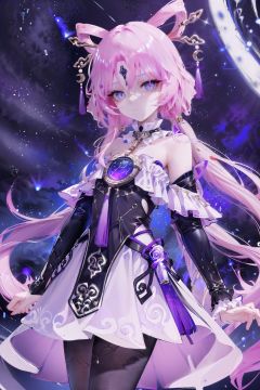 (8k, RAW photo, best quality, masterpiece:1.2), (official art,unity 8k wallpaper,ultra detailed,High quality,best quality), (zentangle, mandala, tangle, entangle:0.6),(blue black),flat color,limited palette,low contrast,(1girl:1.5),solo,serafuku,long straight black hair,lycoris flower,(goat skull:1.),(horror),(gloomy),(blue pigment:1.33),(hollow eyes:1.),(expressionless eyes:1.3),cowboy shot,<lora:fuxuan-v100:0.85:char>, fuxuan, dress, hair ornament, long hair, purple eyes, pink hair, bangs, pantyhose, detached sleeves, hair stick, (beautiful_face), ((intricate_detail)), ((finely_detailed)), fine_fabric_emphasis, ((glossy)),
