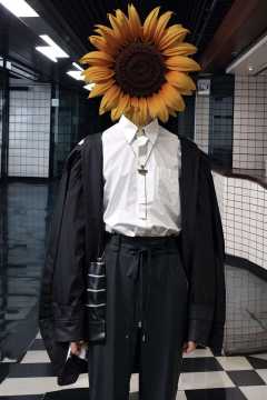 argyle, argyle_background, argyle_legwear, board_game, checkered, checkered_background, checkered_flag, checkered_floor, checkered_kimono, checkered_legwear, checkered_scarf, checkered_shirt, checkered_skirt, chess_piece, flower, holding_flower, jewelry, perspective, plaid_background, soccer_ball, solo, sunflower, telstar, tile_floor, tile_wall, tiles, trading_card, vanishing_point, shirt, long_sleeves, 1boy, white_shirt, male_focus, collared_shirt, pants, indoors, necklace, sweater, black_pants, object heads,sun flower as head<lora:ob head:1>
