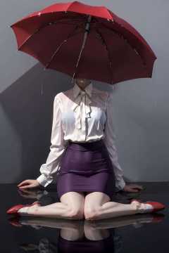 1girl, black_umbrella, high_heels, holding_umbrella, oil-paper_umbrella, parasol, pink_umbrella, rain, red_footwear, red_umbrella, shared_umbrella, sitting, skirt, umbrella, solo, simple_background, shirt, long_sleeves, ribbon, underwear, white_shirt, bra, wet, black_background, wet_clothes, pencil_skirt, reflection, purple_skirt, wet_shirt, puddle, headless, object heads, umbrella as head <lora:ob head:1>