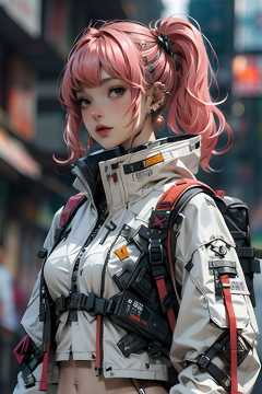 (realistic:1.4),1girl, backpack, bangs, blurry, blurry_background, depth_of_field, earrings, hair_ornament, jewelry, piercing, pink_hair, solo, long_hair, breasts, long_sleeves, navel, closed_mouth, jacket, upper_body, ponytail, midriff, bag, lips, crop_top, grey_eyes, ear_piercing, zipper, freckles, strap, urban techwear, outfit<lora:urbantechwear:1> <lora:A素体机娘:0.3>
