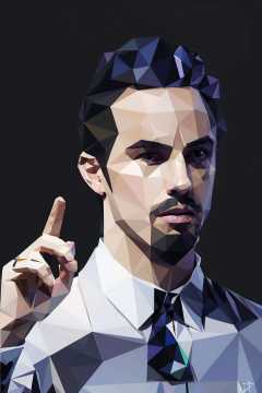 argyle, argyle_background, argyle_legwear, checkered, checkered_background, checkered_flag, checkered_floor, solo, simple_background, shirt, 1boy, male_focus, hand_up, black_background, gem, 1other, crystal, cube, low ploy<lora:low:1>