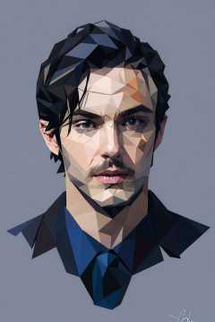 1boy, argyle, argyle_background, black_eyes, blue_background, checkered, checkered_background, imperial_japanese_army, male_focus, scar, scar_on_cheek, scar_on_face, short_hair, signature, solo, looking_at_viewer, simple_background, shirt, black_hair, closed_mouth, necktie, collared_shirt, blue_shirt, portrait, low ploy<lora:low:1>