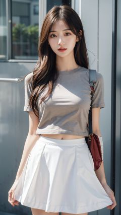 1girl,solo,looking at viewer,long hair,white skirt,parted lips,realistic,