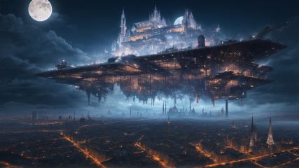 sky city,building floating on air,(((masterpiece,best quality))),((good structure,Good composition,good atomy)), ((clear, original,beautiful)),see color ,cloud, fantasy,Science and technology city,night,moon,blue theme,
