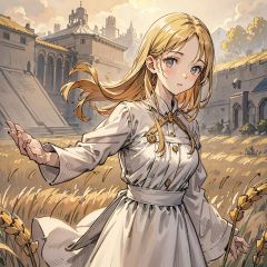 In the golden wheat field,a pure white dress,1girl,Upper body,solo,very detailed eyes and face,beautiful detail eyes,official art,2k,super detailed,beautiful,masterpiece,sunlight,highly detailed skin,realistic skin details,visible pores,clear focus,DSLR,high quality,film grain,fair skin,
