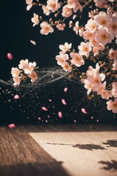 Exquisite wallpaper, 32K resolution, masterpiece, high quality, high detail, V-Ray camera, flying petals, sparkling particles, trembling splashes of details, high saturation, high contrast.