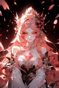 beautiful cute crystal girl in 16 years old, wearing crystal wear, the crystal is evil, black and pink and red glowing crystal, crystal pink hair,smirking,the power is every wear, she is evil but cute, the crystal is evil and glowing black and pink and red colors, detailed evil eyes, she has a cute canine, glowing crystal wear, (incredible details, cinematic ultra wide angle, depth of failed, hyper detailed, insane details, hyper realistic, high resolution, cinematic lighting, soft lighting, incredible quality, dynamic shot,,Hair with scenery,The eye,yuyao,huliya