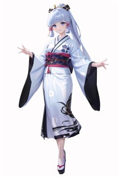 (8k, RAW photo, best quality, masterpiece:1.2),1girl,(full body:1.3), standing,shenli, kimono,instrument, long hair, ponytail, white kimono, hair ribbon, sash, hair ornament, blunt bangs, wide sleeves, sidelocks, smile, very long hair<lora:shenli-v100:0.75>(white background, simple background:1.3),(beautiful_face), ((intricate_detail)), (revealing clothes:1.2),((finely_detailed)),fine_fabric_emphasis,((glossy)),