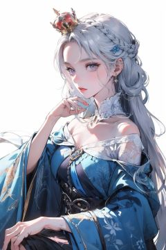 Best quality, highly detailed, masterpiece, ultra detailed, (reality: 1.2), 1 girl, (white background), simple background, delicate eyes, silver hair, purple eyes, hair_ornament, (white off-the-shoulder shirt: 1.3), long hair, pointy_ears, crown_braid, expressionless, straight hair, (++ sitting: 1.2), room,