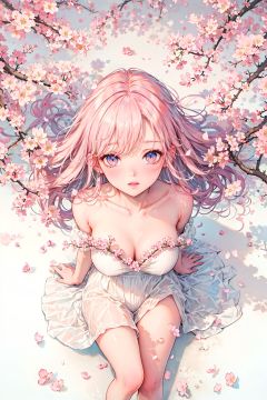 cherry blossoms, falling petals, petals, petals on liquid, rose petals, 1girl,from above, cowboy shot,