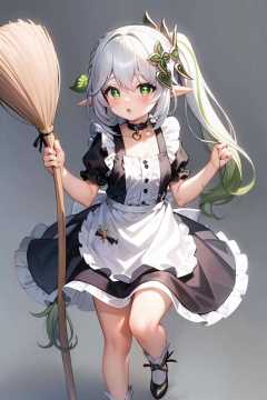 masterpiece, best quality, <lora:nahida:1>,1girl, nahida (genshin impact), alternate costume, maid, enmaided, green eyes, multicolored hair, broom, apron, green hair, gradient hair, pointy ears, holding broom, cat, full body, side ponytail, symbol-shaped pupils, black footwear, short sleeves, maid headdress, holding, bow, solo, bangs, dress, black dress, black bow, long hair, maid apron, flower, socks, white hair, shoes, puffy sleeves, white socks, simple background, choker, rose, frills, cross-shaped pupils, looking at viewer, standing on one leg, pink flower, pink rose, standing, hair between eyes, puffy short sleeves, grey hair, jewelry, hair ornament, white apron, parted lips, mop, grey background, :o, wrist cuffs, blush, colored tips, sidelocks, frilled dress, gem, ribbon, frilled apron, hair bow