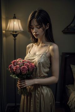 8k,Moody,atmospheric,painterly,fine details,cinematic composition,Warm lighting,gentle,nostalgic,flower,roses,tranquil,evocative,hazy atmosphere,a sense of solitude,dreamlike atmosphere,high level of detail,evocative color palette,8K resolution,<lora:33333333333danse:0.4>,lotus<lora:调细节添加-2-2修手detail tweaker:1.0>