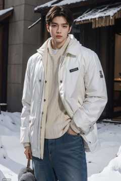 handsome male,big muscle,crew cut,soft light <lora:Winter:0.7> dark academia,outfits,outdoor,winter