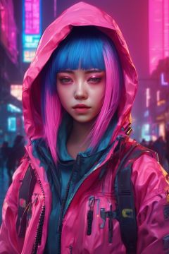 Cyberpunk style, master masterpiece, best quality, 1 girl, 22 year old girl, pink love, pink eyes, science and technology jacket, blue and pink gradient hair, withered rose stems full of thorns surrounded and entangled, low saturation, low saturation, flat square, beautiful face, pink light, high detail, 8K, lifelike, mobile phone lifelike, simple background,