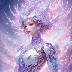 (masterpiece, top quality, best quality, official art, beautiful and aesthetic:1.2),(1girl),extreme detailed,(fractal art:1.3),colorful,highest detailed..,Purple,White,Blue,Chest,Abdomen,Snowflakes falling,(whole body:1.5),a face,(Only one face.:1.1),.,relief,Pink Mecha