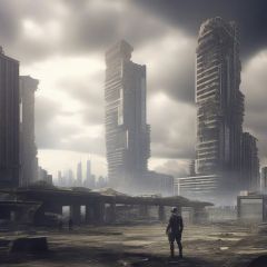 Future City, building, cloud, scenery, outdoors, sky, ruins, skyscraper, city, day, cloudy sky, standing, post-apocalypse