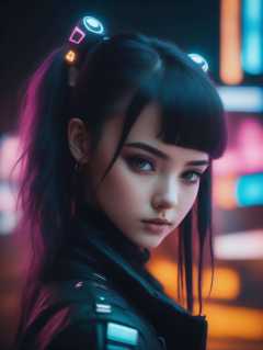 analog style cyberpunk portrait of a cute girl, beautiful