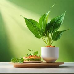 Best quality,masterpiece,ultra high res,,booth, no humans, food focus, still life, plant, food, leaf, simple background, green background ,<lora:sdxllora2-000007:0.8>