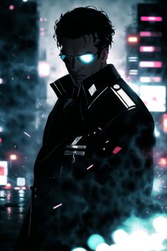 guiltys, a detective man, tuxedo on, thriller theme, upper body, deal with it, synthwave theme, dramatic mood, (bokeh:1.1), depth of field, style of Casey Baugh, tracers, vfx, splashes, lightning, light particles, electric, police departament background, signs, illustration, artstation