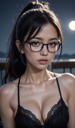 masterpiece, best quality, high quality, 4k, 1girl, realistic, black hair, ponytail, glasses, upper body, smoking, (night:1.5), moonlight, <lora:Skin%20Whitening%20and%20Tanning%20Regulator:0.8>