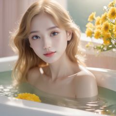 fsw,In the bathroom, a beautiful girl lies in a large bathtub filled with warm, misty water. Soft sunlight from the window illuminates her delicate features, making her golden hair shimmer like diamonds. Pastel-colored flowers adorn the walls, adding a touch of elegance to the space. Her serene expression reflects a sense of tranquility and contentment as she enjoys her private moment of relaxation, detailed skin, (masterpiece,best quality, ultra realistic,32k,RAW photo,detail skin, 8k uhd, dslr,high quality:1.5),